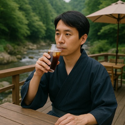 (※川沿いでアイスコーヒーを飲む涼しげなイメージで作成してみました✨)